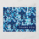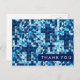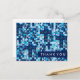 Motif géométrique de triangles dans les tons bleus. Ces cartes postales correspondent à l'invitation suivante : com