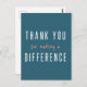 Carte postale simple et élégante avec citation « Merci de faire une différence » et design typographique moderne en blanc et orange sur fond sarcelle, parfaite pour une infirmière, un enseignant, un ami, un proche ou un aidant.