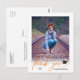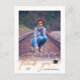 Cette simple graduation photo merci carte postale avec un script orange moderne "merci" qui apparaît sous la photo verticale. L'arrière offre un texte personnalisé pour un message de remerciement personnel.