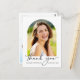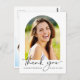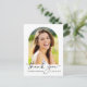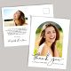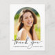 Carte postale moderne de la carte de remerciements de diplôme avec photo du diplômé dans un cadre d'arche, "merci" dans un script élégant et leur nom et année de classe dans une simple typographie. Au contraire, ajoutez un point supplémentaire, personnalisez un message de remerciement et ajoutez leur nom dans un script signature.