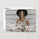 Carte postale Merci Gras Blanc Retro Script Photo Graduation | Envoyer des remerciements avec ce paysage personnalisable merci carte postale. Il dispose d'un script rétro et d'une typographie simple. Ce sera parfait pour les mariages, les diplômes et bien plus encore.