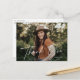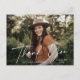 Graduation photo moderne merci carte postale avec la photo du diplômé avec "merci" dans un script de calligraphie blanc écrit à la main superposition. Personnalisez le devant de la remise de diplômes merci carte postale en ajoutant le nom du diplômé et l'année de remise de diplômes. La carte postale de remerciement de la photo s'inverse pour afficher votre adresse de retour et votre message personnalisé.