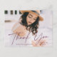 Graduation photo moderne merci carte postale avec la photo du diplômé avec "merci" dans une écriture manuscrite de calligraphie violet superposition de script. Personnalisez le devant de la remise de diplômes merci carte postale en ajoutant le nom du diplômé et l'année de remise de diplômes. La carte postale de remerciement de la photo s'inverse pour afficher votre adresse de retour et votre message personnalisé.
