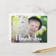 Carte de remerciements photo de la fête d'anniversaire de l'enfant. Cette carte est entièrement personnalisable, alors ajoutez votre photo et ajoutez votre propre message de "Merci" dans les espaces fournis. Pour un contrôle plus créatif, utilisez le bouton "Customiser" et déplacez le texte et la zone de texte pour l'adapter à votre photo, ou modifiez la police, la taille ou la couleur de la police. Cette carte est conçue pour être utilisée pour la fête d'anniversaire d'un garçon ou d'une fille.