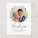 Carte de remerciements de Mariage de calligraphie simple et moderne avec une couronne boho de branche d'olivier vert aquarelle. Pour une personnalisation plus avancée de cette conception, cliquez sur le bouton "Customiser" ci-dessus ! Des articles correspondants sont également disponibles.