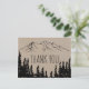 Cette montagne boisée rustique merci carte postale est parfaite pour un mariage boisé. Le design d'inspiration nature présente la silhouette d'une forêt de pins et de montagnes sur papier imitation kraft. Personnalisez le dos de la carte postale avec vos noms, votre adresse de retour et un message de remerciement. Sinon, laissez la section de modèle de message de remerciement vide pour écrire à la main une note personnalisée réfléchie sur chaque carte après leur arrivée. Ces cartes peuvent être utilisées pour un mariage, une douche nuptiale ou tout événement spécial. Veuillez noter que ceci n'est pas imprimé sur du papier kraft réel. C'est un graphisme de haute qualité fait pour ressembler à du papier kraft.