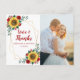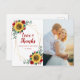 Ces cartes de remerciement ont un tournesol d'aquarelle moderne et des roses rouges au design géométrique en faux or. Personnalisez-les avec votre propre texte et photo. Ils font partie d'une collection qui comprend une gamme complète d'invitations de mariage et de papeterie assorties. Veuillez consulter la page de collecte ou visiter notre magasin pour voir la gamme complète d'articles que vous pouvez personnaliser pour votre mariage. Ce modèle fonctionne le mieux avec les photos au format portrait.