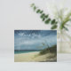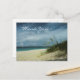 Cette carte postale de remerciement comprend une photo d'une plage tropicale, avec des dunes, des mouettes et des voiliers.