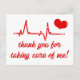 NewParkLane - Carte de remerciement médicale, avec un battement de cœur, un cœur et une citation 'Merci de prendre soin de moi' en typographie rouge mignonne.