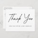 Simple mariage merci carte postale avec "Merci" affiché dans un script manuscrit noir avec un arrière - plan blanc. Personnalisez l'avant de la carte postale moderne merci en ajoutant votre nom. Ajoutez votre adresse de retour et un message personnalisé au dos.