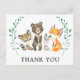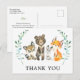 Merci à vos invités de célébrer la maman à être! Cette carte postale de remerciement présente une aquarelle illustrant les animaux des forêts entourés de feuilles d'eucalyptus. Personnalisez avec vos informations ou cliquez sur "Cliquez pour customiser plus loin" pour modifier les styles, la taille et les couleurs des polices.