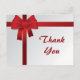Envoyez votre appréciation pour les cadeaux reçus après une fête d'anniversaire de décembre, un mariage ou un jour férié de Noël avec la carte postale Merci d'hiver Red Bows. Cette élégante note de remerciement personnalisée en hiver présente un design qui ressemble à un cadeau enveloppé avec un arc rouge et un arrière - plan blanc.