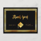 Une carte de remerciement pour le diplômé. Un fond de couleur noire et un cadre doré faux. Sur le devant, un style de lettrage à la main et le texte : Merci ! Diplômé 2023 (ou toute autre année) et une casquette de diplômé, chapeau. Arrière : Modèle pour votre note de remerciement et nom. Pas de couleur de fond.