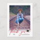 Cette simple photo diplômée merci carte postale avec un script rouge moderne "merci" qui apparaît sous la photo verticale. L'arrière offre un texte personnalisé pour un message de remerciement personnel.