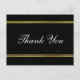 Le script blanc dit "Merci" sur carte postale noire. Deux lignes en faux or sont au-dessus et au-dessous du texte.