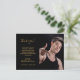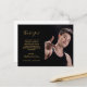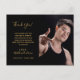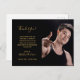 Un carte de remerciements de graduation photo moderne et élégant. Fond de couleur noire. Avec le texte : Merci! écrit dans un script de style écrit à la main, des lettres d'or. Modèles pour la photo du diplômé, merci note et nom, lettres d'or.