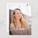 Merci design graduation, pour le collège ou le lycée, avec photo de fond plein et le mot "merci", en écriture moderne. Customisez facilement avec vos photos préférées (avant et arrière) et votre texte. Inclut un message court, à l'arrière.
