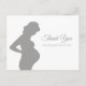 Une carte postale moderne blanche et grise vous remercie avec la silhouette d'une femme enceinte qui regarde sa bosse.
