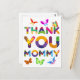 Texte décoratif "Merci Maman" sur fond blanc. Six papillons colorés flottent autour de l'image ou s'assoient sur une lettre. Une carte postale personnalisable pour célébrer la fête des mères, un anniversaire ou toute autre occasion. Vous pouvez changer les papillons et mettre des photos à leur place. Veuillez utiliser le bouton "Personnaliser" pour changer la taille du texte-image, déplacer les papillons ou changer la couleur de fond. Amusez-vous, personnalisez et achetez-en un, et soyez heureux !