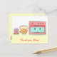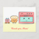 Un dessin kawaii d'un cupcake avec des pépites arc-en-ciel tirant sur une plateforme en bois avec des roues pour offrir un cadeau emballé à sa mère, le four rose. Le message indique "Merci, maman !". Une carte postale parfaitement fantaisiste et douce qui amusera et rendra maman heureuse à la fête des mères ou tout autre jour pour montrer votre appréciation à maman. Conçue par Rusty Doodle.