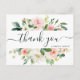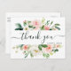 Cette carte postale mariage vous remercie, présente des fleurs d'aquarelle peintes dans un feuillage rose, blanc et vert. Pour une personnalisation plus avancée de cette conception, cliquez sur le lien "Customiser plus loin". Des articles correspondants sont également disponibles.