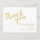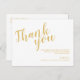 Classy Elegant White et Gold Mariage Merci Postcard avec titre en or de police de script moderne avec détails en or moderne sans serif police sur arrière - plan blanc. Remarque : Les détails du papier sont simulés dans l'illustration. Il n'y aura pas de métal sur ce produit.