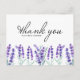 Envoyez des remerciements avec cette belle carte postale à fleurs. Il présente des illustrations aquarelles de fleurs de lavande et un script élégant. Personnalisez en ajoutant des noms, une adresse de retour et un message. Ces cartes postales de remerciement florales violettes sont pour les mariages, anniversaires, diplômes et bien plus encore.