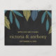 Ces cartes postales de remerciement mariages sont parfaites pour tout couple qui planifie une célébration mariage moderne branchée. Le design se compose d'un élégant arrière - plan en damier avec des feuilles feuillus chic dessinés à la main dans les tons bleu et vert. Le design simple peut être personnalisé pour convenir à votre événement spécial et sera la carte de remerciement parfaite pour toute fête à thème floral, y compris : douches nuptiales, fiançailles, wedding showers, fêtes d'anniversaire et bien plus encore.