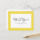 Le design lumineux de la Carte de remerciements mariage jaune et blanc présente une belle bordure chic en jaune qui comprend une élégante petite bordure blanche. La calligraphie et le script sont gris charbon sur un arrière - plan blanc. Personnalisez avec votre nom et votre date de mariage. Un modèle moderne pour la date et l'année complète le design calligraphique unique. [REMARQUE : L'affichage de la date du mariage tel qu'indiqué, utilise la barre ou la ligne verticale qui se trouve au-dessus du \ sur un clavier ou sur votre appareil intelligent avec les caractères spéciaux. Vous pouvez également customiser avec n'importe quel autre personnage de votre choix.] Le dos de la carte est blanc et offre de la place pour votre note manuscrite personnalisée pour ajouter cette touche très spéciale que votre famille et vos amis apprécieront!