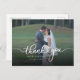 Une façon géniale et réfléchie de remercier vos amis, votre famille et vos collègues qui vous ont honoré leur présence lors de votre mariage avec cette photo moderne, cartes de remerciement avec script écrit "merci" et un coeur d'amour.