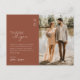 Élégant mariage chic merci cartes postales avec un arrière - plan orange brûlé, votre monogramme, une photo de votre jour de mariage, et une note de remerciement personnalisée.