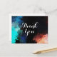 Une carte postale de remerciement au design abstrait moderne. Peindre des taches et des couleurs tourbillonnantes en turquoise, blanc, orange et noir avec des touches de bleu.