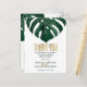Elégante, moderne et simple couleur verte de l'eau tropicale plage suisse fromage feuille de monstère sur arrière - plan blanc avec faux imprimé feuille d'or typographie Merci d'été Cartes postales. Ce design classique et sophistiqué est parfait pour tout événement élégant et branché, y compris les mariages et les occasions quotidiennes. Toutes les photos.