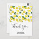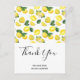 Carte postale Merci avec un joli motif de citrons jaunes aux feuilles verts et tranches de citron fraîchement coupé.