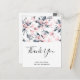 Carte postale Merci avec un élégant motif fait avec une aquarelle illustration de fleurs roses avec feuilles et tiges bleu-gris.