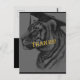 Créez des cartes de remerciement personnalisées uniques dans la commodité d'une carte postale. L'avant de la carte postale a, "Merci!" avec un dessin personnalisé de couleur tigre. Ajoutez votre message spécial au dos avec votre nom. Vous pouvez également ajouter le nom et l'adresse postale du destinataire pour l'imprimer directement sur la carte postale. Couleurs noir et or. Utilisez le modèle pour personnaliser.