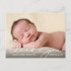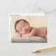 Ce nouveau bébé mignon merci carte postale comprend une grande photo et une jolie calligraphie. Le recto de la carte postale faire-part de naissance comprend des écritures qui se lisent "merci" avec un coeur entre les deux mots. Ajoutez le nom du nouveau-né et la date de naissance sous la calligraphie. Le texte noir recouvre votre photo préférée de bébé. À l'arrière, vous pouvez ajouter un message personnalisé plus long aux destinataires et inclure les statistiques de naissance de votre bébé.