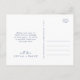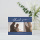 Cette carte postale boho chic bleu mariage photo merci est parfaite pour un mariage minimaliste. Le design bohème moderne bleu foncé et audacieux présente une calligraphie rustique simple avec un style unique mais classique. Personnalisez l'avant de la carte postale avec 2 photos de votre jour de mariage et de vos noms. Personnalisez le dos avec votre adresse de retour. Supprimez l'exemple de texte au verso de la carte postale afin de pouvoir écrire une note réfléchie à chaque invité. Vous pouvez également imprimer un message.