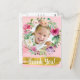 Cute rose et violet Merci fleuri carte photo de la fête d'anniversaire de l'enfant avec une jolie couronne fleurie et des accents d'or. Ajoutez la photo de votre enfant et votre propre message spécial.