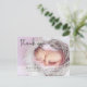 Personnalisé avec la photo de la petite fille et le message spécial carte postale. Cette conception utilise une police de caractères élégante dessinée à la main pour une touche de sophistication pour le mot "merci". Express votre enthousiasme à annoncer la naissance de votre enfant et envoyez votre gratitude en même temps. La superposition de transparence blanche vous permet d'ajouter du texte sans perdre la lisibilité, s'il vous plaît contactez-moi si vous avez besoin d'aide.