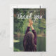 Cette élégante carte postale de remerciement présente la photo de fond du diplômé sur le devant, ainsi que les mots "merci" dans la typographie moderne blanche. Personnalisez le devant et le dos avec votre nom, votre année de classe et votre message.