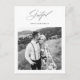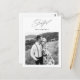 Mariage moderne minimaliste noir et blanc une photo de remerciement carte postale dispose d'élégant script de calligraphie reconnaissante et une photo avec un message de remerciement personnalisé et adresse de retour sur le dos de la simple carte de remerciements mariée.