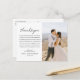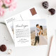 2 mariage photo carte postale remerciant vous offre un design moderne et minimal avec des photos mariages sur le devant et le dos de la carte, et tout simplement un script coeur élégant "merci" lettrage. La carte comprend un message de remerciement personnalisé du couple marié qui peut être personnalisé sur le devant. Notez que le jeu de couleurs noir et blanc peut être modifié.