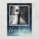Nous vous remercions vivement de nous envoyer des cartes postales à vos invités mariages. Ajoutez votre propre photo et vos noms de mariages magnifiques. L'arrière - plan est dans une belle aquarelle bleu marine peinte à la main foncée. Il y a de faux éclats d'or sur le dessus et le bas. Sous la photo il dit "merci" en caractères de script modernes. À l'arrière, il y a un message de remerciement par défaut que vous pouvez modifier. Votre adresse de retour peut également être ajoutée facilement.
