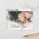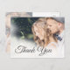 Carte de remerciements photo de mariage élégant. Une police élégante est sur un arrière - plan photo. L'information sur le dos est facilement changée en la vôtre.La typographie est dans une police moderne Tout le texte est facilement modifié pour ajouter vos propres informations. Ajoutez vos propres photos. Le verso comporte une photo qui est estompée afin que votre propre message personnalisé puisse être ajouté. Votre photo apparaîtra également estomadée. Ce carte de remerciements personnalisé est autonome, mais il fait partie d'une suite de mariage stationnaire de Chessie's Fine Designs.