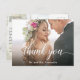 Envoyez vos notes de remerciement de mariage avec cette carte postale personnalisée qui inclut votre photo de mariage préférée sur le devant et une autre photo optionnelle sur le dos. Un exemple de texte a été ajouté que vous pouvez modifier avec vos propres mots ou supprimer le texte et écrire vos notes à la main. Remplacez les exemples de photos par vos propres sélections.