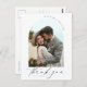 Express votre gratitude avec notre Carte Postale Simple Mariage Photo Merci. Cette carte postale est une belle façon de remercier vos invités, avec des calligraphies élégantes et votre photo mariage préférée. Son design sophistiqué ajoute une touche de classe, rendant votre appréciation sincère encore plus mémorable. Cette carte postale est la touche finale parfaite pour vos célébrations mariages et est facilement personnalisable pour s'adapter à votre style. Faites-moi savoir si vous avez besoin d’aide - j’aimerais vous aider!