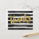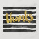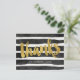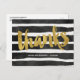 Cette carte postale chic et glamour vous remercie, présente un faux papier doré, une calligraphie de script de brosse et des bandes d'aquarelle noire peintes.