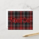 Texte/police "Merci" noir avec bordure rouge sur arrière - plan plaid rouge.