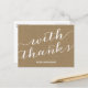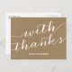 Cette carte postale de remerciement décontractée-chic présente le texte "Avec remerciements" dans un script de calligraphie géant contre un arrière - plan de style papier kraft.